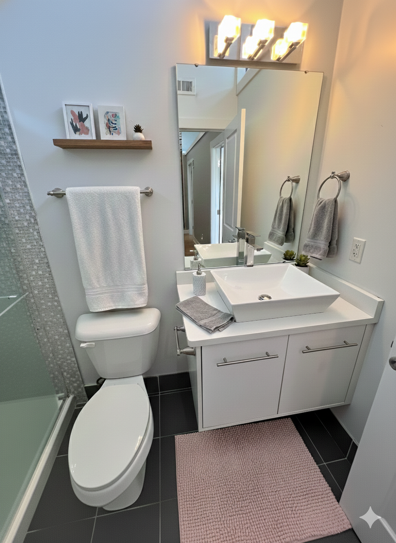 • Renovated bathroom with updated finishes and tile