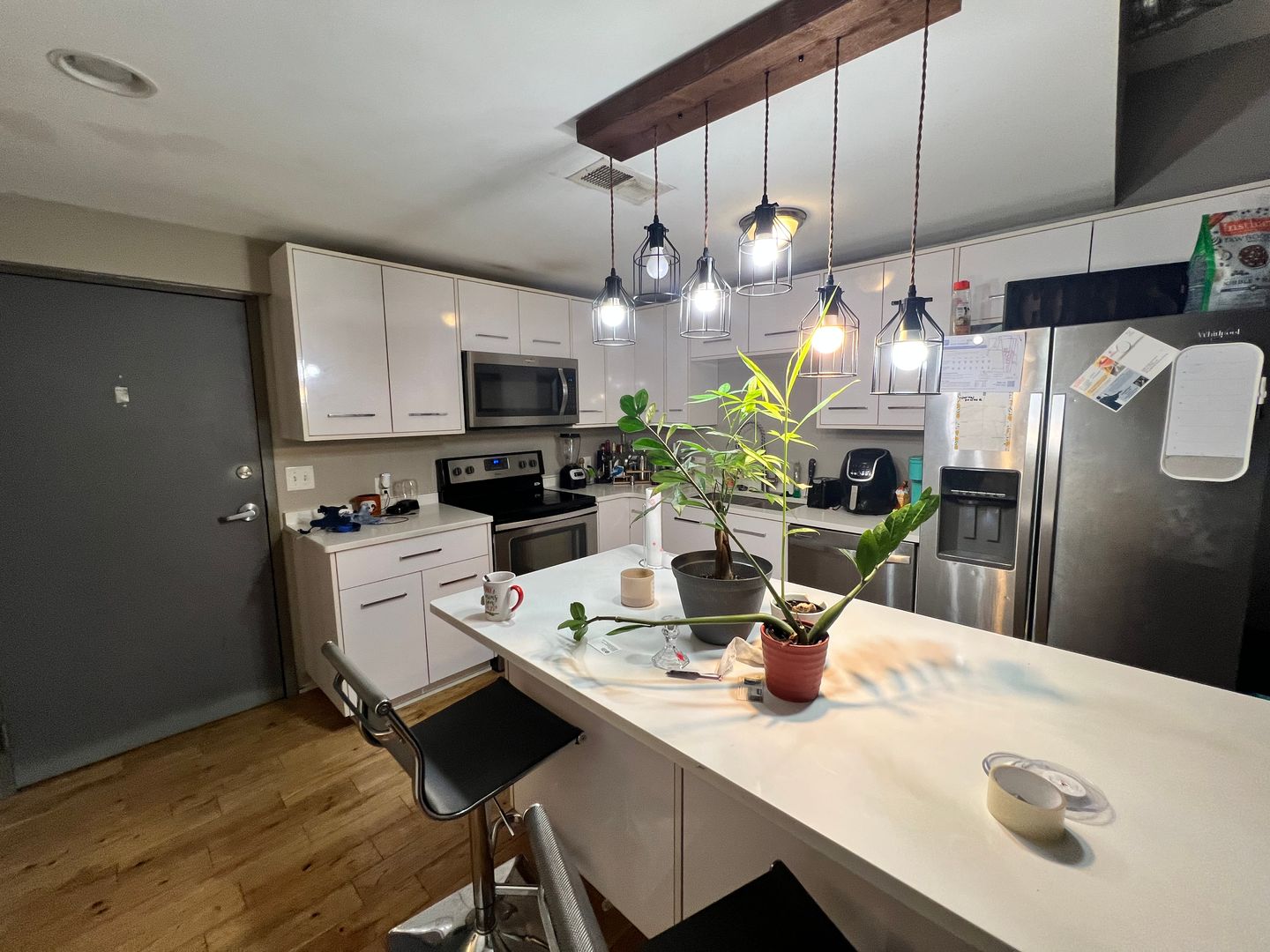 • Huge chef’s kitchen with stainless steel appliances and quartz countertops